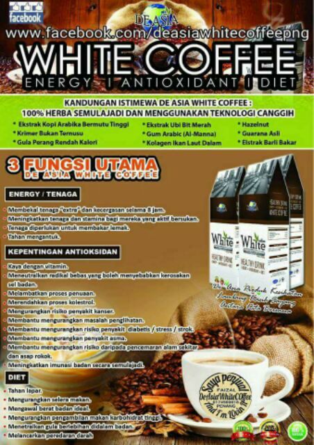 De asia white coffee. De asia white coffee. Kepentingan antioksidan kaya dengan vitamin. 223 likes 6 talking about this. Samada anda rasa mahu diet awet muda atau ingin extra tenaga nikmatinya bersama keluarga tersayang amat bermakna sekali.