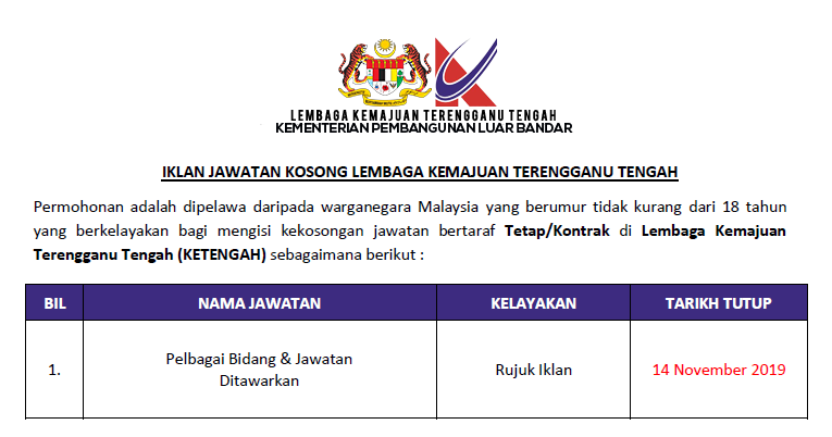 Jawatan Kosong Lembaga Kemajuan Terengganu Tengah Ketengah