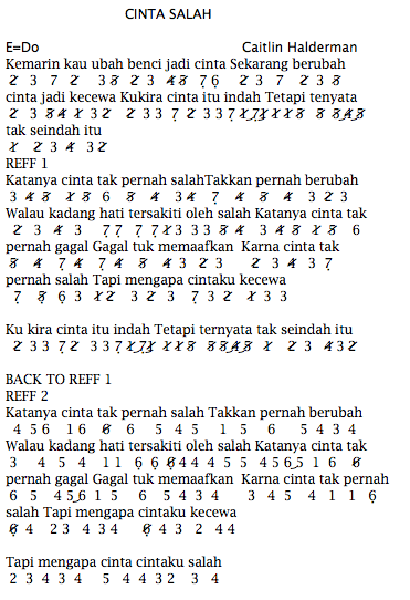 Not Angka Pinika Lagu Caitlin Halderman Cinta Salah