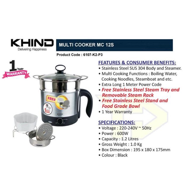 Khind Stainless Steel Multi Cooker Mc12s Free Steam Tray Rack